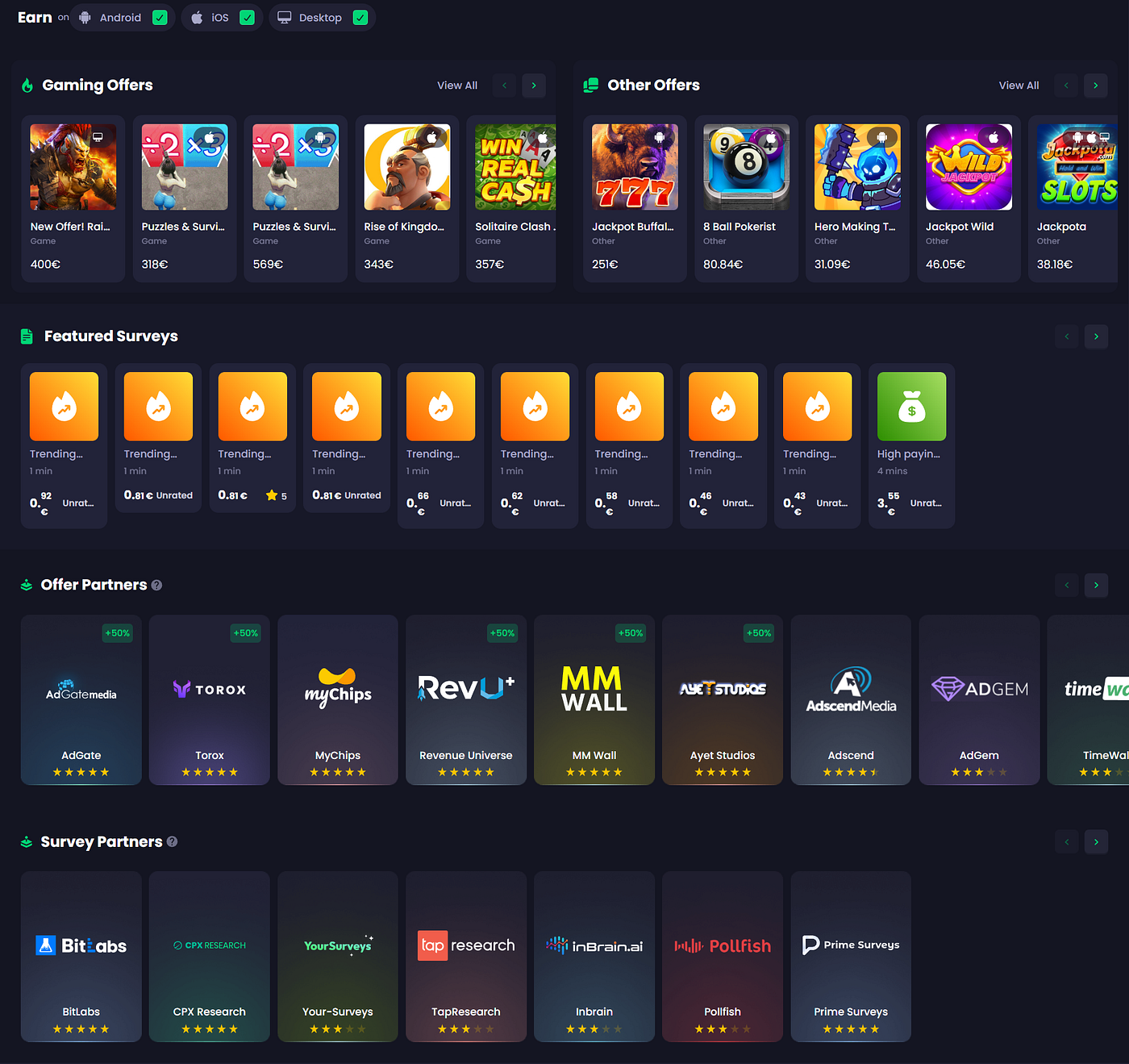 Surveys, games, apps, and offers.
